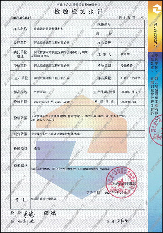 玻璃鋼避雷針檢驗檢測報告